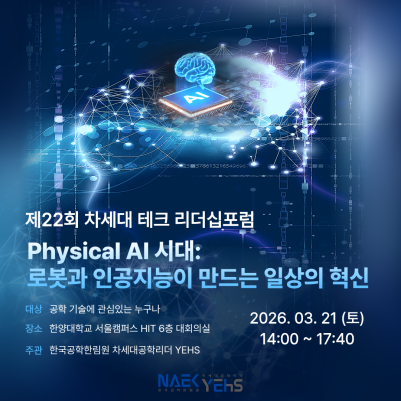 한국공학한림원 산하의 차세대공학리더 YEHS에서 제22회 차세대 테크 리더십포럼을 개최합니다!
